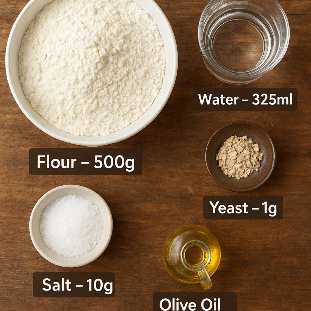 One of the most overlooked parts of a Neapolitan Pizza Dough Recipe is hydration — the ratio of water to flour. Traditional recipes typically use a 60–65% hydration ratio, meaning 600–650ml of water is used for every kilogram of flour.