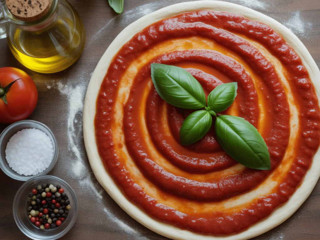 - Spread a thin layer of tomato sauce evenly, leaving a small border for the crust.