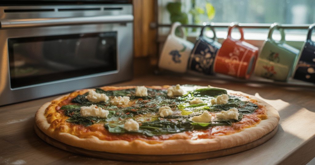 Frozen spinach can also work. Melt and squeeze it before using it. This ensures that pizza still maintains its sharp cut and distributes the benefits of greens. In the US, it is easy to find both fresh and frozen spinach, so choose the option that is best for your kitchen preferences.