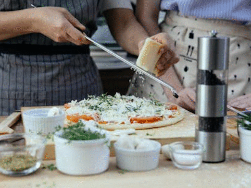 Better tools bring better outcomes. A pizza stone gives crust that classic crunch. A baking sheet works too if a stone is not available. Many cooks in the U.S. To prevent food from sticking, use parchment paper. A sharp knife or mandoline ensures evenly sliced tomatoes.